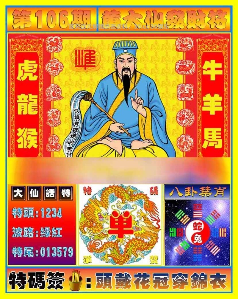 黄大仙精解:頭戴花冠穿錦衣,解吉美生肖兔龙蛇马羊鸡